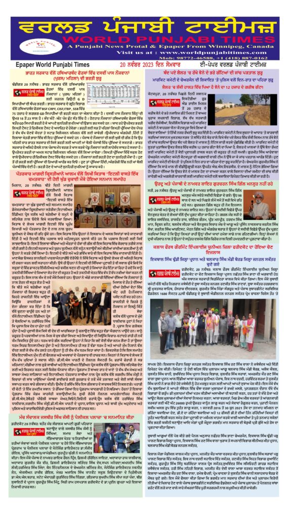 Posted inਈ-ਪੇਪਰ World Punjabi times – 20.11.2023 Posted by worldpunjabitimes November 20, 2023No Comments 20.11.2023Download Share this:Post Click to share on WhatsApp (Opens in new window) WhatsApp worldpunjabitimes View All Posts Post navigation Previous Post World Punjabi Times Poem/ ਸੁੱਕੇ ਟੁੱਕਰNext Postਲਾਇਨਜ਼ ਆਈ ਹਸਪਤਾਲ ਆਦਮਪੁਰ ਵਿਖੇ 7 ਦਿਨਾਂ ਅੱਖਾਂ ਦਾ ਮੁਫ਼ਤ ਅਪ੍ਰੇਸ਼ਨ ਕੈਂਪ ਸ਼ੁਰੂ