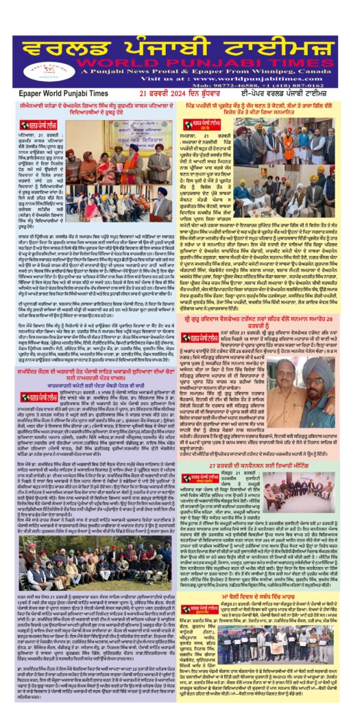 Posted inਈ-ਪੇਪਰ World Punjabi Times-21.02.2024 Posted by worldpunjabitimes February 21, 2024No Comments 21.02.24Download Share this:Post Share on WhatsApp (Opens in new window) WhatsApp worldpunjabitimes View All Posts Post navigation Previous Post ਮਾਤ ਭਾਸ਼ਾ ਦਾ ਗਿਆਨ ਹੋਣਾ ਜ਼ਰੂਰੀ : ਹਰਮਨਪ੍ਰੀਤ ਸਿੰਘNext Postਹੁਣ ਨਿਗਲਣ ਯੋਗ ਗੋਲੀ ਗੈਸਟ੍ਰਿਕ ਬੈਲੂਨ ਦੀ ਮਦਦ ਨਾਲ ਭਾਰ ਘਟਾਇਆ ਜਾ ਸਕਦਾ ਹੈ
