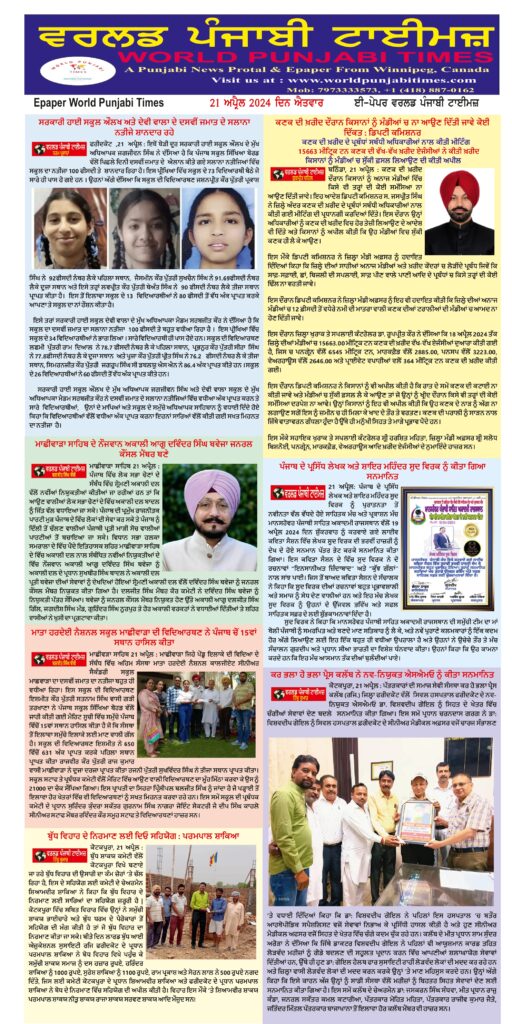 Posted inਈ-ਪੇਪਰ World Punjabi Times-21.04.2024 Posted by worldpunjabitimes April 21, 2024No Comments 21.04.24Download worldpunjabitimes View All Posts Post navigation Previous Post ਸਰਕਾਰੀ ਹਾਈ ਸਕੂਲ ਔਲਖ ਅਤੇ ਦੇਵੀ ਵਾਲਾ ਦੇ ਦਸਵੀਂ ਜਮਾਤ ਦੇ ਸਲਾਨਾ ਨਤੀਜੇ ਸ਼ਾਨਦਾਰ ਰਹੇNext Postਜ਼ਿਹਨ ਅਤੇ ਅਸ਼ਲੀਲਤਾ