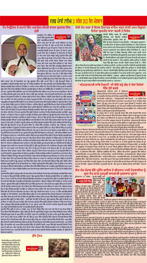 Posted inਈ-ਪੇਪਰ World Punjabi Times-21.11.2023 Posted by worldpunjabitimes November 21, 2023No Comments 21.11.2023Download worldpunjabitimes View All Posts Post navigation Previous Post ਲੋਕ ਮੰਚ ਪੰਜਾਬ ਵੱਲੋਂ ਪ੍ਰਸਿੱਧ ਗਾਇਕ ਤੇ ਗੀਤਕਾਰ ਪਾਲੀ ਦੇਤਵਾਲੀਆ ਨੂੰ ਦੂਜਾ ਨੰਦ ਲਾਲ ਨੂਰਪੁਰੀ ਯਾਦਗਾਰੀ ਪੁਰਸਕਾਰ ਪ੍ਰਦਾਨNext Postਇਜ਼ਰਾਈਲ ਵੱਲੋਂ ਗਾਜ਼ਾ ਉੱਤੇ ਕੀਤੇ ਜਾ ਰਹੇ ਲਗਾਤਾਰ ਹਮਲੇ ਗ਼ੈਰ-ਮਨੁੱਖੀ, ਜ਼ਾਲਮਾਨਾ ਅਤੇ ਮਨੁੱਖੀ ਅਧਿਕਾਰਾਂ ਦੀ ਘੋਰ ਉਲੰਘਣਾ- ਤਰਕਸ਼ੀਲ ਸੁਸਾਇਟੀ ਵੈਨਕੂਵਰ