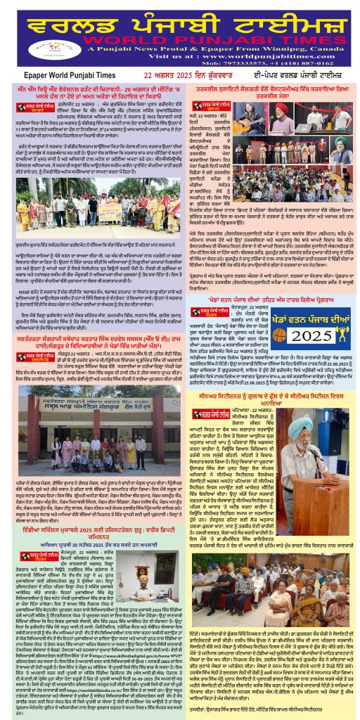 Posted inਈ-ਪੇਪਰ World Punjabi Times-22.08.2025 Posted by worldpunjabitimes August 22, 2025No Comments 22.08.25Download worldpunjabitimes View All Posts Post navigation Previous Post ਸੱਤਵੀਂ ਵਿਦਿਆਰਥੀ ਚੇਤਨਾ ਪਰਖ ਪ੍ਰੀਖਿਆ ਸੰਬੰਧੀ ਕੀਤੀ ਮੀਟਿੰਗNext Postਗ਼ਜ਼ਲ_ ਯਾਰੀ