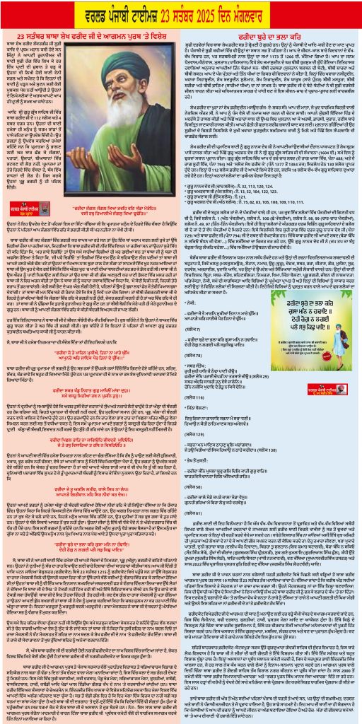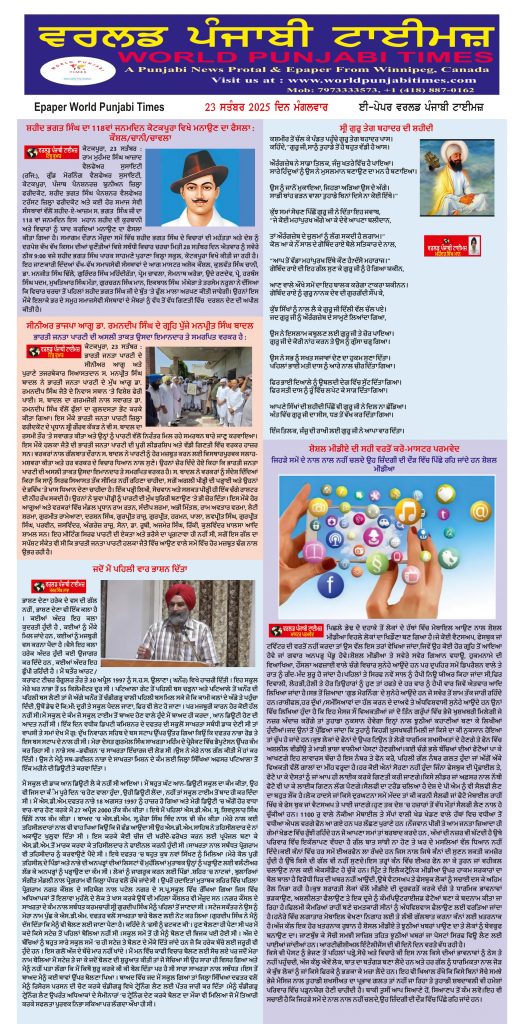 Posted inਈ-ਪੇਪਰ World Punjabi Times-23.09.2025 Posted by worldpunjabitimes September 23, 2025No Comments 23.09.25Download worldpunjabitimes View All Posts Post navigation Previous Post 23 ਸਤੰਬਰ ਬਾਬਾ ਸ਼ੇਖ ਫਰੀਦ ਜੀ ਦੇ ਆਗਮਨ ਪੁਰਬ ’ਤੇ ਵਿਸ਼ੇਸ਼ Next Postਮੁੱਖ ਮੰਤਰੀ ਸਿਹਤ ਯੋਜਨਾ ਸੂਬੇ ਦੇ ਲੱਖਾਂ ਪਰਿਵਾਰਾਂ ਲਈ ਉਮੀਦ ਦੀ ਰੌਸ਼ਨੀ ਬਣ ਕੇ ਸਾਹਮਣੇ ਆਈ : ਮਨਜੀਤ ਸ਼ਰਮਾ