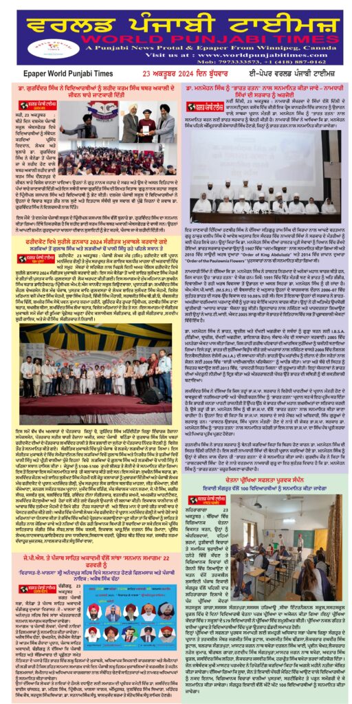 Posted inਈ-ਪੇਪਰ World Punjabi Times-23.10.2024 Posted by worldpunjabitimes October 23, 2024No Comments 23.10.24Download worldpunjabitimes View All Posts Post navigation Previous Post ਕੈਨੇਡੀਅਨ ਪੰਜਾਬੀ ਸਾਹਿਤ ਸਭਾ ਟੋਰਾਂਟੋ ਵੱਲੋਂ ਓਨਟਾਰੀਓ ਵਿੱਚ ਪੰਜਾਬੀ ਭਾਸ਼ਾ ਦੇ ਵਿਕਾਸ, ਪ੍ਰਚਾਰ ਤੇ ਪਸਾਰ ਸਬੰਧੀ ਸੈਮੀਨਾਰ ਕਰਵਾਇਆ ਗਿਆNext Post26 ਅਕਤੂਬਰ ਨੂੰ ਸਰੀ ਤੇ 27 ਅਕਤੂਬਰ ਨੂੰ ਐਬਸਫੋਰਡ ਵਿਖੇ ਹੋਵੇਗਾ ਤਰਕਸ਼ੀਲ ਮੇਲਾ