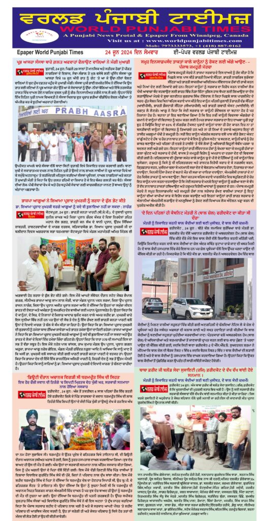 Posted inਈ-ਪੇਪਰ World Punjabi Times-24.06.2024 Posted by worldpunjabitimes June 24, 2024No Comments 24.06.24Download worldpunjabitimes View All Posts Post navigation Previous Post ਸਮੂਹ ਇਨਸਾਫ਼ਪਸੰਦ ਤਾਕਤਾਂ ਕਾਲੇ ਕਾਨੂੰਨਾਂ ਨੂੰ ਰੋਕਣ ਲਈ ਅੱਗੇ ਆਉਣ- – ਪੰਜਾਬ ਜਮਹੂਰੀ ਮੋਰਚਾNext Postਇਟਲੀ : ਇਟਾਲੀਅਨ ਮਾਲਕ ਦੀ ਕੁਤਾਹੀ ਕਾਰਨ ਦੁਨੀਆਂ ਨੂੰ ਅਲਵਿਦਾ ਕਹਿਣ ਵਾਲੇ ਮਰਹੂਮ ਪੰਜਾਬੀ ਸਤਨਾਮ ਸਿੰਘ ਨੂੰ ਇਨਸਾਫ਼ ਦੁਆਉਣ ਲਈ ਵਿਸ਼ਾਲ ਰੋਸ ਮੁਜ਼ਾਹਰਾ