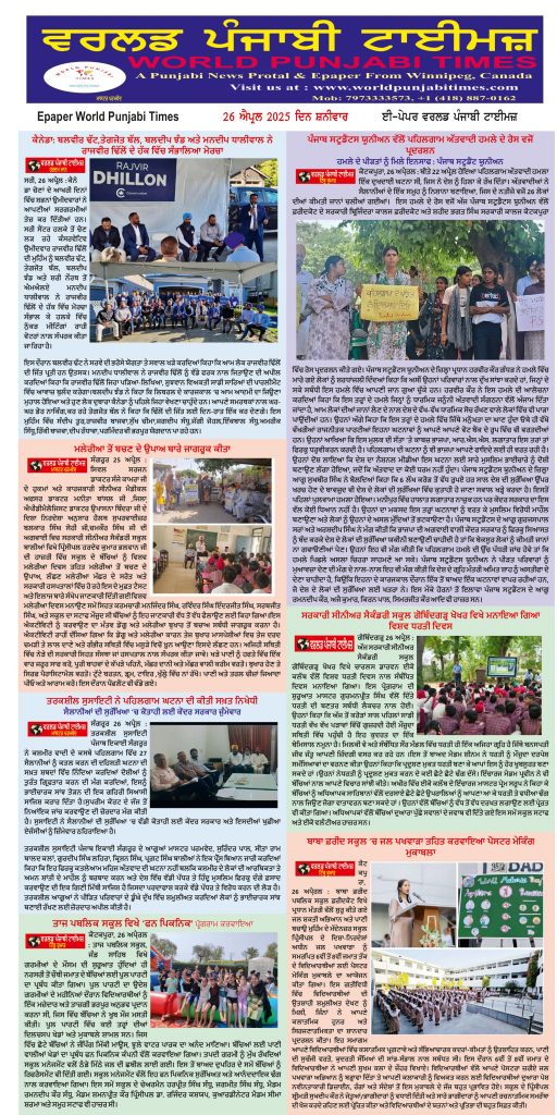 Posted inਈ-ਪੇਪਰ World Punjabi Times-26.04.2025 Posted by worldpunjabitimes April 26, 2025No Comments 26.04.25Download worldpunjabitimes View All Posts Post navigation Previous Post ਸਰਕਾਰੀ ਸੀਨੀਅਰ ਸੈਕੰਡਰੀ ਸਕੂਲ ਗੋਬਿੰਦਗੜ੍ਹ ਖੋਖਰ ਵਿਖੇ ਮਨਾਇਆ ਗਿਆ ਵਿਸ਼ਵ ਧਰਤੀ ਦਿਵਸNext Post ਕਿਲੋਨਾ ਵਿਖੇ ਓਕਆਗਨ ਗੁਰਦੁਆਰਾ ਵੱਲੋਂ ਸਜਾਏ ਵਿਸਾਖੀ ਨਗਰ ਕੀਰਤਨ ਵਿਚ ਹਜਾਰਾਂ ਸ਼ਰਧਾਲੂ ਬੜੇ ਉਤਸ਼ਾਹ ਨਾਲ ਸ਼ਾਮਲ ਹੋਏ