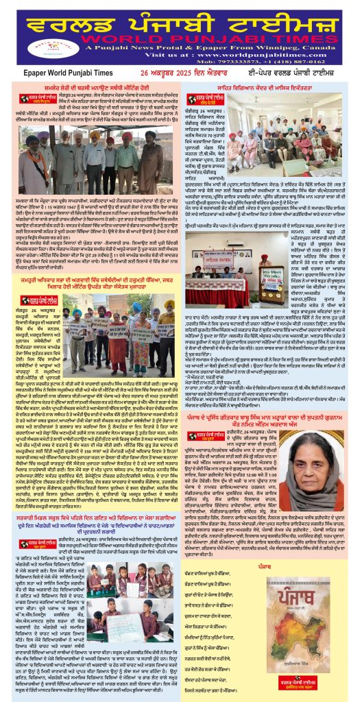 Posted inਈ-ਪੇਪਰ World Punjabi Times-26.10.2025 Posted by worldpunjabitimes October 26, 2025No Comments 26.10.2025Download worldpunjabitimes View All Posts Post navigation Previous Post ਪੰਜਾਬNext Postਅਮਰੀਕ ਸਿੰਘ ਸੰਧੂ ਸਾਬਕਾ ਸੂਬਾ ਪ੍ਰਧਾਨ ਨੂੰ ਮਨਿਸਟੀਰੀਅਲ ਮੁਲਾਜਮਾਂ ਵੱਲੋਂ ਕੀਤਾ ਗਿਆ ਸਨਮਾਨਤ