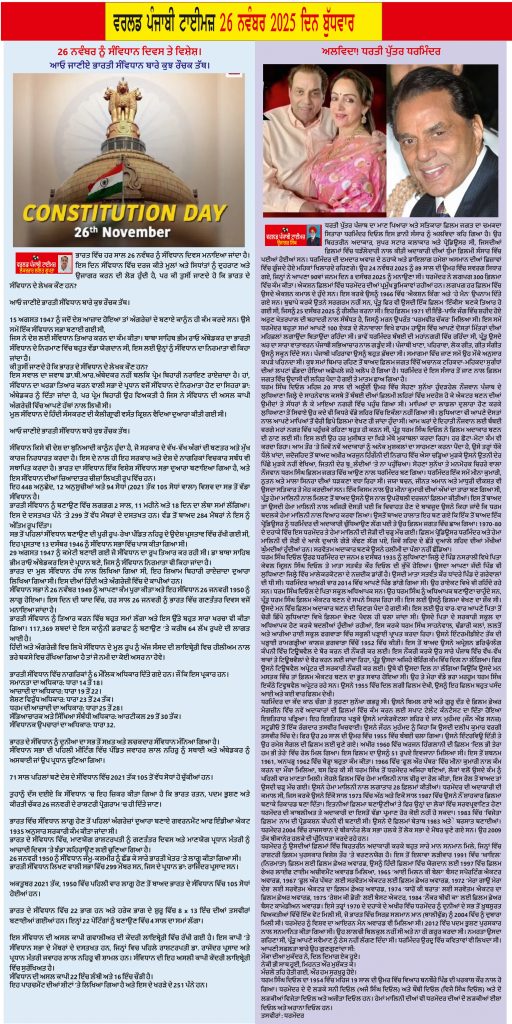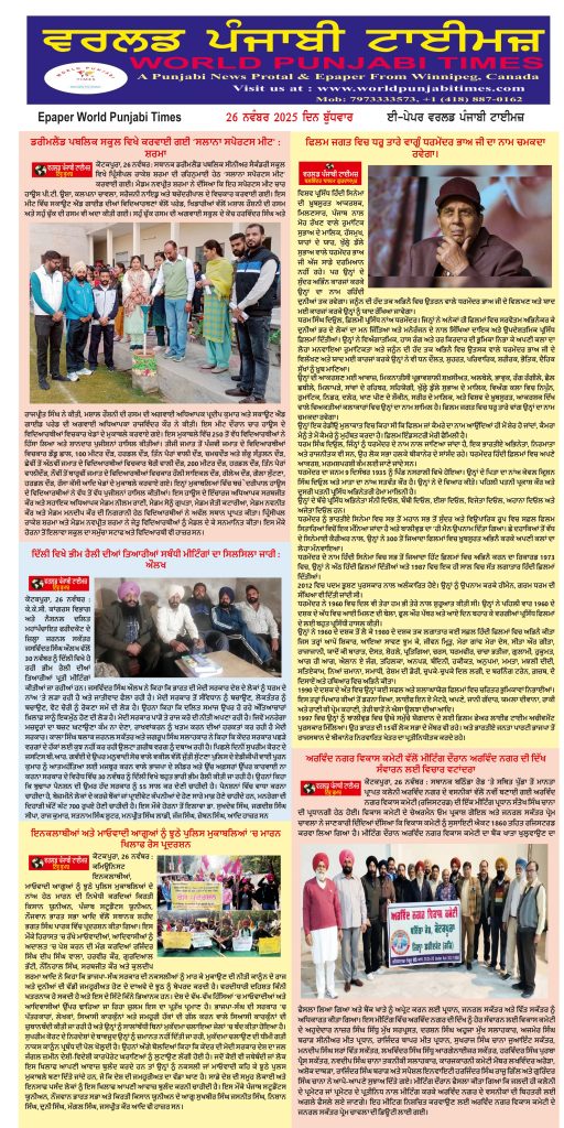 Posted inਈ-ਪੇਪਰ World Punjabi Times-26.11.2025 Posted by worldpunjabitimes November 26, 2025No Comments 26.11.25Download worldpunjabitimes View All Posts Post navigation Previous Post ਅਰਵਿੰਦ ਨਗਰ ਵਿਕਾਸ ਕਮੇਟੀ ਵੱਲੋਂ ਮੀਟਿੰਗ ਦੌਰਾਨ ਅਰਵਿੰਦ ਨਗਰ ਦੀ ਦਿੱਖ ਸੰਵਾਰਨ ਲਈ ਵਿਚਾਰ ਵਟਾਂਦਰਾNext Postਡਰੀਮਲੈਂਡ ਸਕੂਲ ਦੀ ਵਿਦਿਆਰਥਣ ਕ੍ਰਿਤਿਕਾ ਨੇ ਪੰਜਾਬ ‘ਚੋਂ ਜਿੱਤਿਆ ਗੋਲਡ ਮੈਡਲ