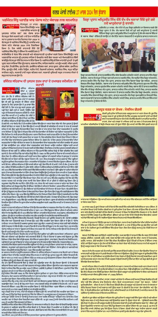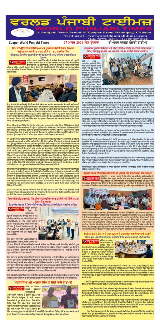 Posted inਈ-ਪੇਪਰ World Punjabi Times-27.03.2024 Posted by worldpunjabitimes March 27, 2024No Comments 27.03.24Download worldpunjabitimes View All Posts Post navigation Previous Post ਜ਼ਿਲ੍ਹਾ ਪ੍ਰਧਾਨ ਅਮ੍ਰਿਤਵੀਰ ਸਿੰਘ ਵੱਲੋਂ ਵੱਖ ਵੱਖ ਬਲਾਕਾਂ ਵਿੱਚੋਂ ਚੁਣੇ ਗਏ ਨਵੇਂ ਆਹੁਦੇਦਾਰਾਂ ਨੂੰ ਵਧਾਈ।Next Post“ਅੰਤਰਰਾਸ਼ਟਰੀ ਸਾਹਿਤਕ ਸਾਂਝਾਂ ਤੇ ਪੰਜਾਬ ਸਾਹਿਤ ਅਕਾਦਮੀ ਵੱਲੋਂ ਸੀਨੀਅਰਜ਼ ਕਲੱਬ ਦੇ ਫ਼ਾਊਂਡਰ ਰੂਪ ਕਾਹਲੋਂ ਤੇ ਸ. ਜਸਪਾਲ ਕਾਹਲੋਂ ਨੂੰ ਫੁਲਕਾਰੀ ਤੇ ਸਨਮਾਨ ਪੱਤਰ ਦੇ ਕੇ ਸਨਮਾਨਿਤ ਕੀਤਾ ਗਿਆ । “