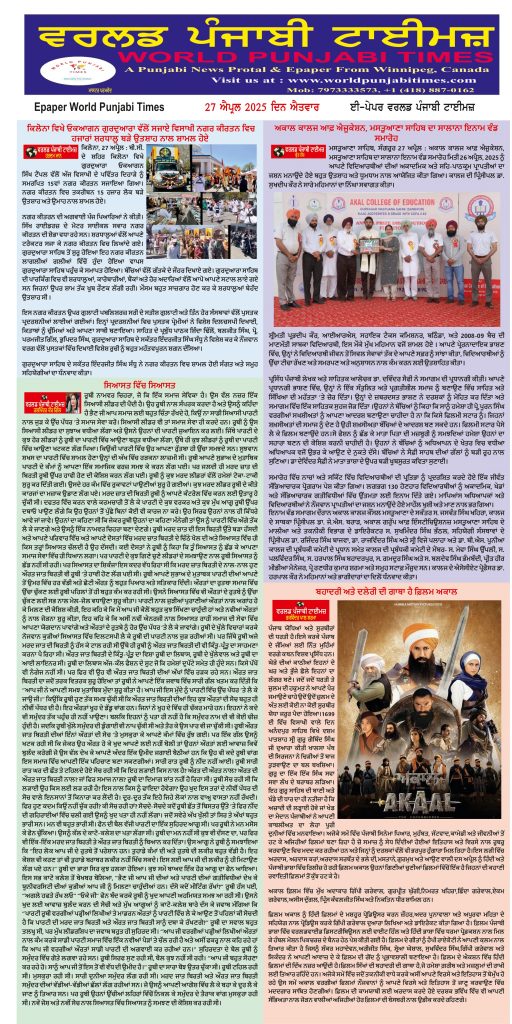 Posted inਈ-ਪੇਪਰ World Punjabi Times-27.04.2025 Posted by worldpunjabitimes April 27, 2025No Comments 27.04.2025Download worldpunjabitimes View All Posts Post navigation Previous Post ਅਕਾਲ ਕਾਲਜ ਆਫ਼ ਐਜੂਕੇਸ਼ਨ, ਮਸਤੂਆਣਾ ਸਾਹਿਬ ਦਾ ਸਾਲਾਨਾ ਇਨਾਮ ਵੰਡ ਸਮਾਰੋਹNext Postਸਾਹਿਤ ਵਿਗਿਆਨ ਕੇਂਦਰ ਚੰਡੀਗੜ੍ਹ ਦੀ ਮਾਸਿਕ ਇਕੱਤਰਤਾ ਹੋਈ