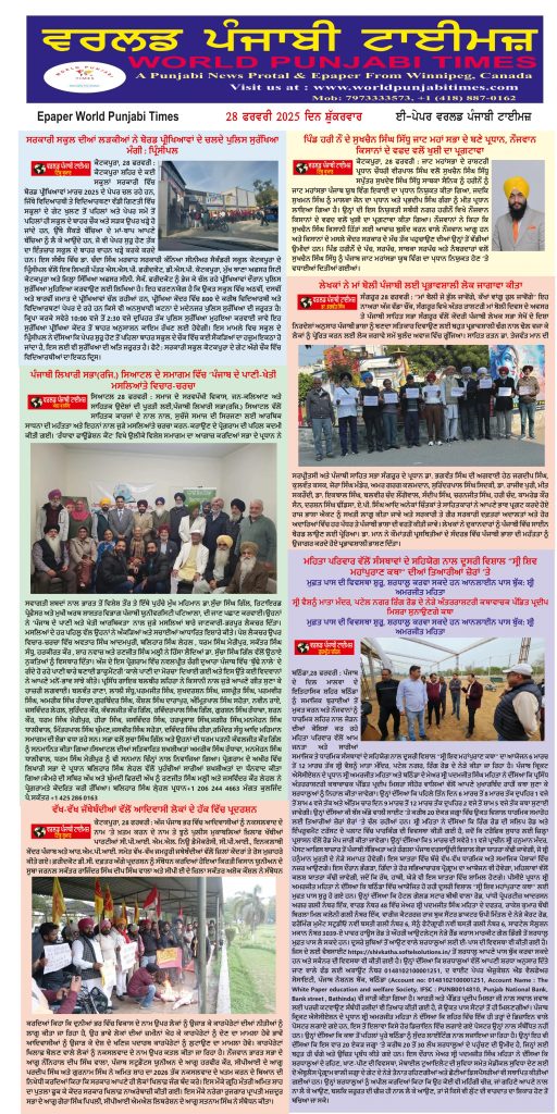 Posted inਈ-ਪੇਪਰ World Punjabi Times-28.02.2025 Posted by worldpunjabitimes February 28, 2025No Comments 28.02.25Download worldpunjabitimes View All Posts Post navigation Previous Post ਸਰਕਾਰੀ ਸਕੂਲ ਦੀਆਂ ਲੜਕੀਆਂ ਨੇ ਬੋਰਡ ਪ੍ਰੀਖਿਆਵਾਂ ਦੇ ਚਲਦੇ ਪੁਲਿਸ ਸੁਰੱਖਿਆ ਮੰਗੀ : ਪ੍ਰਿੰਸੀਪਲNext Postਅਹਿਸਾਨ ਫ਼ਰਾਮੋਸ਼