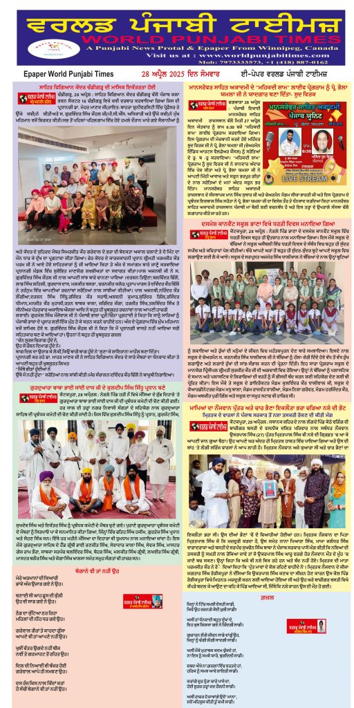 Posted inਈ-ਪੇਪਰ World Punjabi Times-28.04.2025 Posted by worldpunjabitimes April 28, 2025No Comments 28.04.2025Download worldpunjabitimes View All Posts Post navigation Previous Post ਗ਼ਜ਼ਲNext Postਓ.ਟੀ.ਟੀ ਪਲੇਟਫ਼ਾਰਮ ਤੇ ਰਿਲੀਜ਼ ਹੋਣ ਜਾ ਰਹੀ , ਦੁਨੀਆਂ ਭਰ ‘ਚ ਪੰਜਾਬੀ ਵੈੱਬ ਸੀਰੀਜ਼ “ਪੁੱਤਾਂ ਦੇ ਵਪਾਰੀ”:- ਡਾਇਰੈਕਟਰ ਭਗਵੰਤ ਕੰਗ