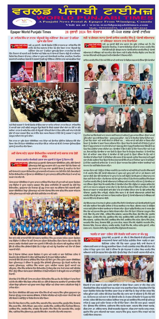Posted inਈ-ਪੇਪਰ World Punjabi Times-28.07.2024 Posted by worldpunjabitimes July 28, 2024No Comments 28.07.2024Download worldpunjabitimes View All Posts Post navigation Previous Post ਡਾ. ਸਾਹਿਬ ਸਿੰਘ ਦਾ ਨਾਟਕ ‘ਸੰਦੂਕੜੀ ਖੋਲ੍ਹ ਨਰੈਣਿਆ’ ਲੋਕ-ਮਨਾਂ ‘ਤੇ ਗਹਿਰਾ ਪ੍ਰਭਾਵ ਛੱਡ ਗਿਆNext Postਝੋਨੇ ਦੀ ਬਿਜਾਈ ਦੇ ਬਦਲ ਵਜੋਂ ਹੋਰ ਫਸਲਾਂ ਦੀ ਕਾਸ਼ਤ ਕਰਨ ਵਾਲੇ ਕਿਸਾਨਾਂ ਨੂੰ ਮਿਲਣਗੇ 17500/- ਰੁਪਏ : ਮੁੱਖ ਖੇਤੀਬਾੜੀ ਅਫਸਰ