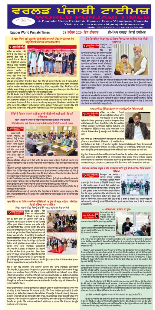 Posted inਈ-ਪੇਪਰ World Punjabi Times-28.11.2024 Posted by worldpunjabitimes November 28, 2024No Comments 28.11.2024Download worldpunjabitimes View All Posts Post navigation Previous Post ਰੋ. ਬੀਰ ਇੰਦਰ ਅਤੇ ਗੁਰਜੀਤ ਹੈਰੀ ਢਿੱਲੋਂ ਰਾਸ਼ਟਰੀ ਪੱਧਰ ਦੇ ‘ਨੈਸ਼ਨਲ ਸੇਵ ਹਿਊਮੈਨਿਟੀ ਐਵਾਰਡ’ ਨਾਲ ਸਨਮਾਨਿਤNext Postਭਾਈ ਜੈਤਾ ਜੀ ਫਾਊਂਡੇਸ਼ਨ ਨੌਜਵਾਨਾਂ ਨੂੰ ਉਚੇਰੀ ਸਿੱਖਿਆ ਮੁਹੱਈਆ ਕਰਵਾਉਣ ਲਈ ਵਚਨਬੱਧ : ਮਰਵਾਹਾ