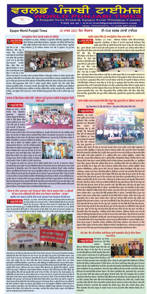 Posted inਈ-ਪੇਪਰ World Punjabi Times-30.03.2025 Posted by worldpunjabitimes March 30, 2025No Comments 30.03.25Download worldpunjabitimes View All Posts Post navigation Previous Post ਅਜਿਹਾ ਸਵਰਗ ਮੈਂ ਧਰਤੀ ਤੇ ਚਾਹਾਂNext Postਰਾਣਾ ਗੁਰਜੀਤ ਸਿੰਘ ਟਿੱਲਾ ਬਾਬਾ ਫ਼ਰੀਦ ਜੀ ਵਿਖੇ ਨਤਮਸਤਕ ਹੋਏ
