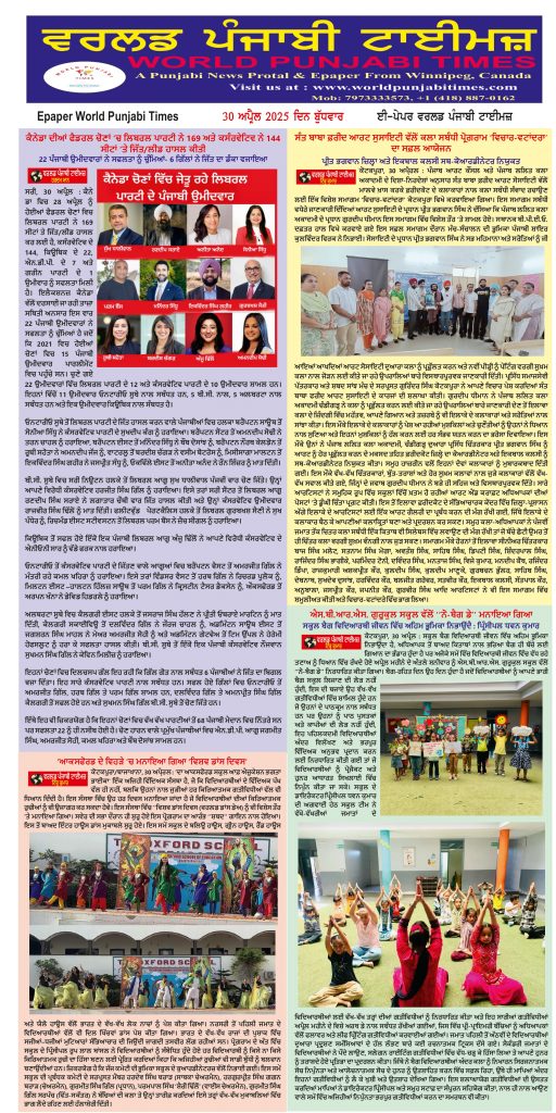 Posted inਈ-ਪੇਪਰ World Punjabi Times-30.04.2025 Posted by worldpunjabitimes April 30, 2025No Comments 30.04.25Download worldpunjabitimes View All Posts Post navigation Previous Post ਕੈਨੇਡਾ ਦੀਆਂ ਫ਼ੈਡਰਲ ਚੋਣਾ ਵਿੱਚ ਪੰਜਾਬੀਆਂ/ ਸਿੱਖਾਂ ਨੇ ਇਤਿਹਾਸ ਰਚਿਆNext Postਮਈ ਦਿਵਸ (ਮਜ਼ਦੂਰ ਦਿਵਸ) ਤੇ ਵਿਸ਼ੇਸ਼ :-ਲੇਖਕ ਧਰਮ ਪ੍ਰਵਾਨਾਂ