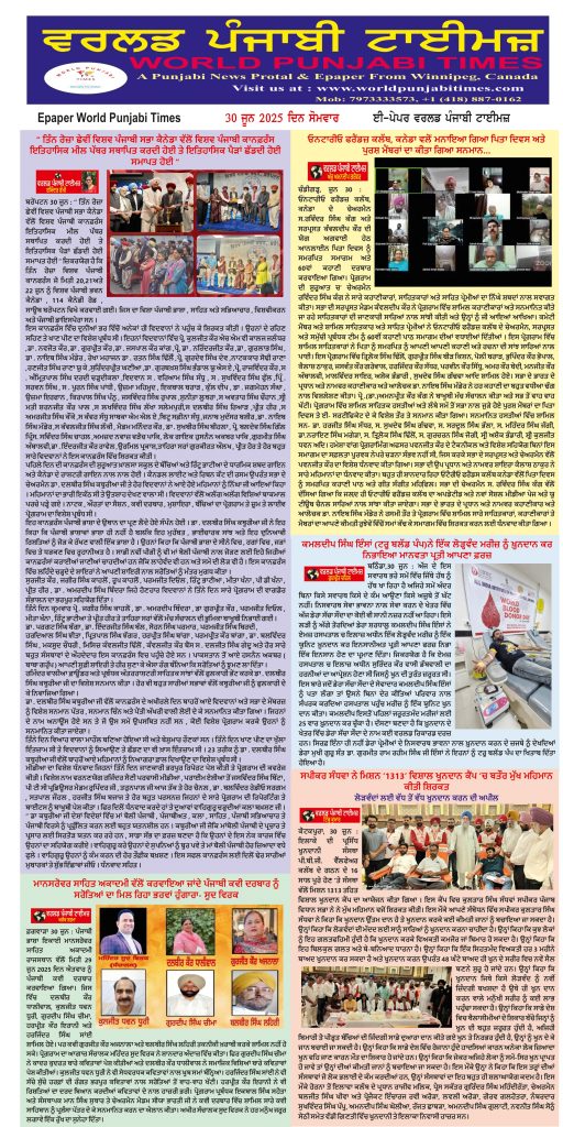 Posted inਈ-ਪੇਪਰ World Punjabi Times-30.06.2025 Posted by worldpunjabitimes June 30, 2025No Comments 30.06.25Download worldpunjabitimes View All Posts Post navigation Previous Post ਡੈਣ ਦੇ ਡਰ ਤੋਂ ਬੰਦ ਕੀਤੀਆਂ ਲੜਕੀ ਦੀਆਂ ਅੱਖਾਂ ਤਰਕਸ਼ੀਲਾਂ ਖੁਲ੍ਹਵਾਈਆਂ-ਮਾਸਟਰ ਪਰਮ ਵੇਦNext Postਨੌਜਵਾਨ ਪੰਜਾਬੀ ਗੀਤਕਾਰ ਗੁਰਬਾਜ਼ ਬਾਜਵਾ ਦਾ ਦੇਹਾਂਤ