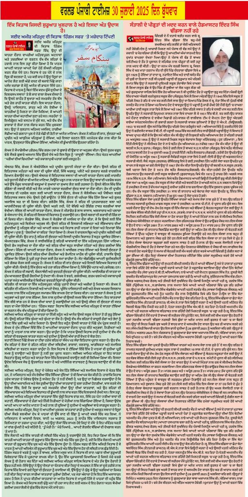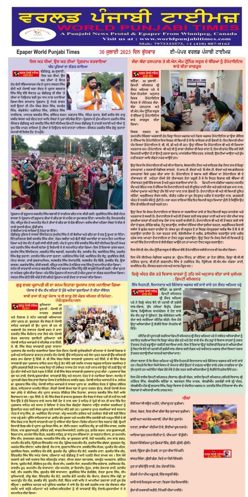 Posted inਈ-ਪੇਪਰ World Punjabi Times-30.07.2025 Posted by worldpunjabitimes July 30, 2025No Comments 30.07.25Download Share this:Post Click to share on WhatsApp (Opens in new window) WhatsApp worldpunjabitimes View All Posts Post navigation Previous Post ਸੰਤਾਲੀ ਦੇ ਪੀੜ੍ਹਤਾਂ ਦੀ ਮਦਦ ਕਰਨ ਵਾਲੇ ਹੈਡਮਾਸਟਰ ਇੰਦਰ ਸਿੰਘ ਢੀਂਡਸਾ ਨਹੀਂ ਰਹੇNext Post31 ਜੁਲਾਈ 2025 ਨੂੰ ਸੇਵਾ ਮੁਕਤੀ ਤੇ ਵਿਸ਼ੇਸ਼ :——–।