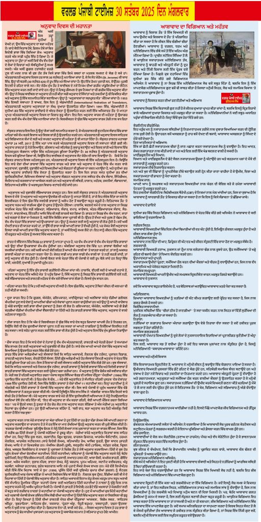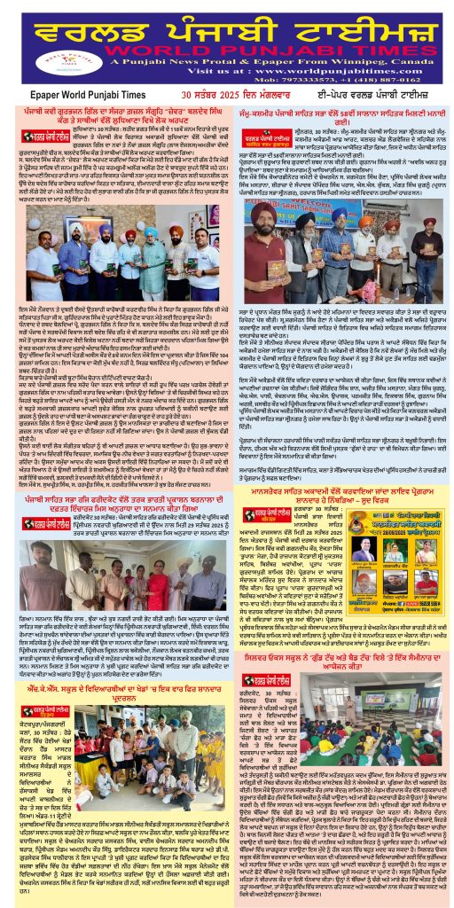 Posted inਈ-ਪੇਪਰ World Punjabi Times-30.09.2025 Posted by worldpunjabitimes September 30, 2025No Comments 30.09.25Download worldpunjabitimes View All Posts Post navigation Previous Post ਪੰਜਾਬੀ ਸਾਹਿਤ ਸਭਾ ਰਜਿ ਫਰੀਦਕੋਟ ਵੱਲੋਂ ਤਰਕ ਭਾਰਤੀ ਪ੍ਰਕਾਸ਼ਨ ਬਰਨਾਲਾ ਦੀ ਦਫ਼ਤਰ ਇੰਚਾਰਜ ਮਿਸ ਅਨੁਰਾਧਾ ਦਾ ਸਨਮਾਨ ਕੀਤਾ ਗਿਆNext Postਸੜਕ ਵਿਚਕਾਰ ਬਣੇ ਵੱਡੇ ਟੋਏ ਬਾਰੇ ਮੁੱਖ ਮੰਤਰੀ ਨੂੰ ਕੀਤੀ ਸ਼ਿਕਾਇਤ