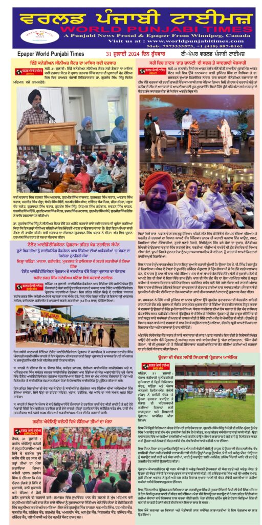 Posted inਈ-ਪੇਪਰ World Punjabi Times-31.07.2024 Posted by worldpunjabitimes July 31, 2024No Comments 31.07.24Download Share this:Post Share on WhatsApp (Opens in new window) WhatsApp worldpunjabitimes View All Posts Post navigation Previous Post ਡੀਏਵੀ ਸਕੂਲ, ਅਣੂਵਰਤ ਸਮਿਤੀ, ਪੰਜਾਬ ਪੁਲਿਸ, ਐਨਐਸਐਸ ਅਤੇ ਜੰਗਲਾਤ ਵਿਭਾਗ ਨੇ ਸਾਂਝੇ ਤੌਰ ‘ਤੇ ਮਨਾਇਆ ਵਣ ਮਹੋਤਸਵ ਮਹੀਨਾNext Postਪਿਕਸ ਸਰੀ ਵੱਲੋਂ ਲਾਏ ‘ਮੈਗਾ ਜੌਬ ਫੇਅਰ 2024’ ਨੇ ਸਫਲਤਾ ਦਾ ਇਕ ਹੋਰ ਇਤਿਹਾਸ ਰਚਿਆ